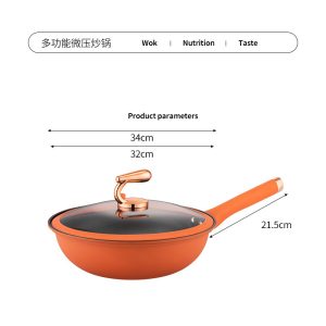 Stainless Steel Non-Stick Micro Pressure Wok, Non-Stick Frying Pan, Smokeless, Induction & Gas Stove Compatible, Household Cooking Wok